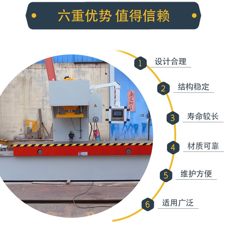 特點: 1.單臂液壓機具有結構剛性好,導向性能好,速度快等特點。